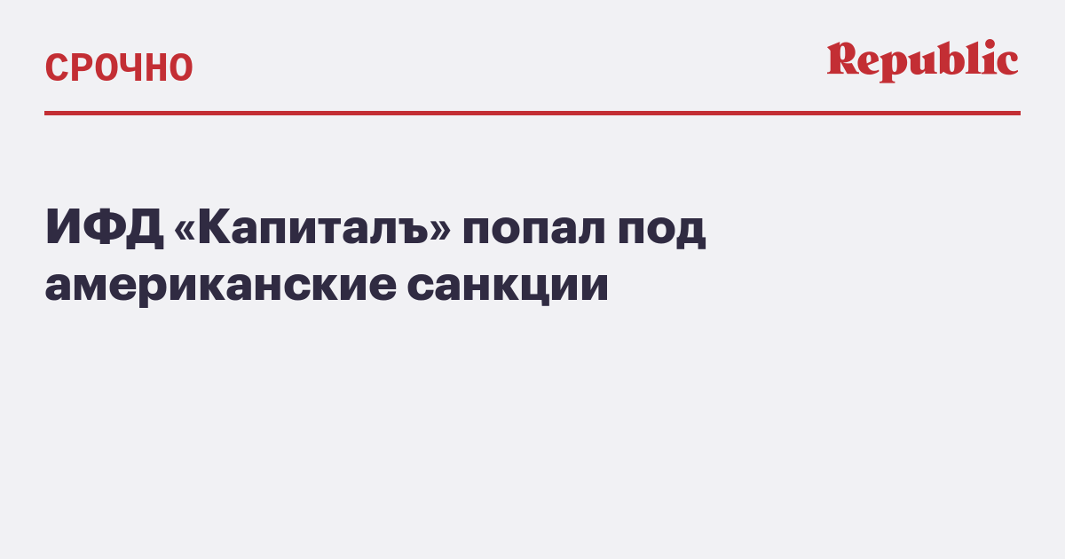 Власти США включили ИФД «Капиталъ» в число компаний, попавших под действие санкции. Обновленный список опубликовал Минфин США.