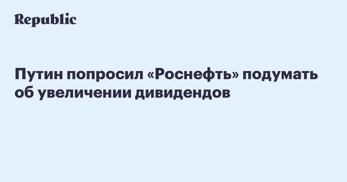 Акционеры «Роснефти» на общем собрании (намечено на 22 июня) могли бы обсудить вопрос об увеличении дивидендов. Об этом заявил президент РФ Владимир Путин, передает «Прайм».