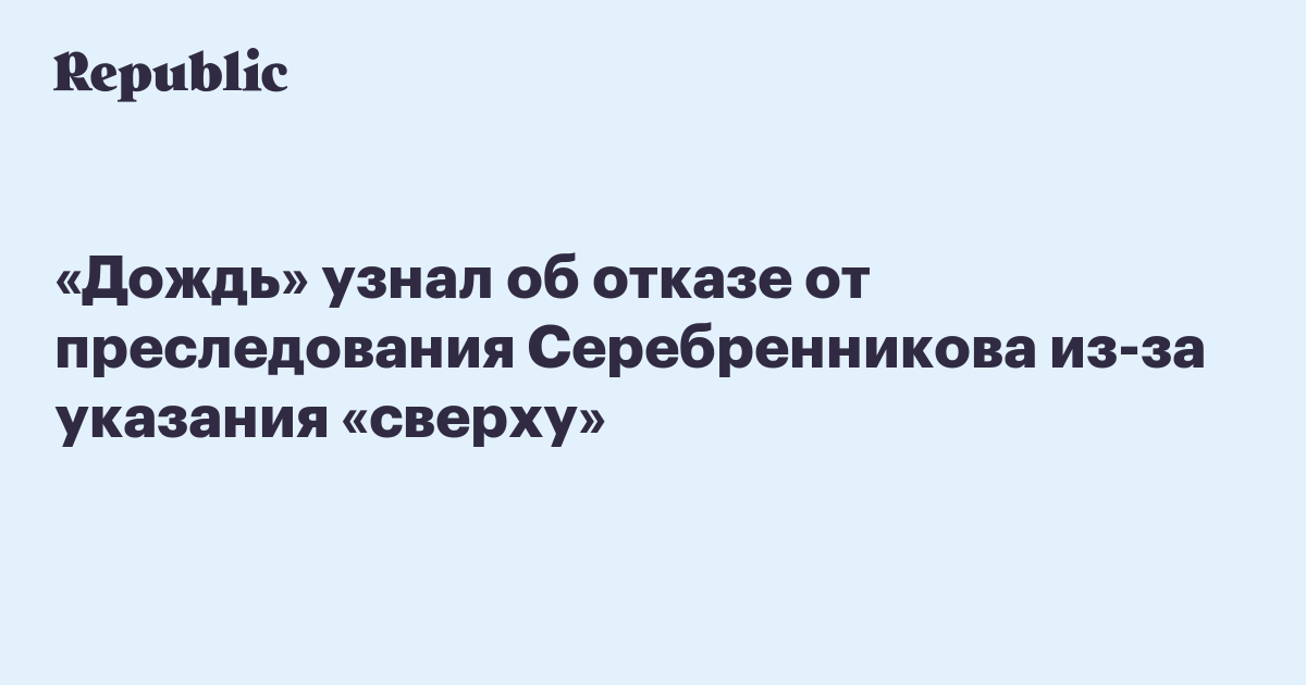 «Дождь» узнал об отказе от преследования Серебренникова из-за указания «сверху»