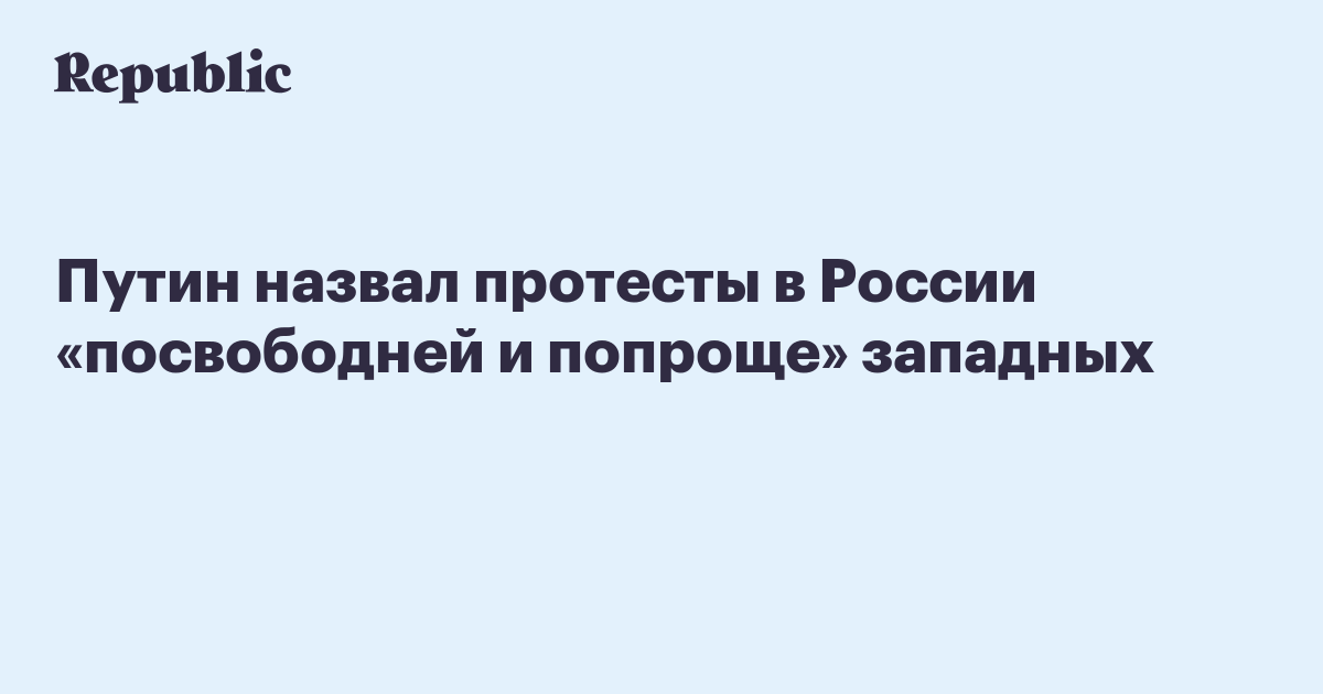 Президент России Владимир Путин заявил, что в России с протестными акциями «все посвободней и попроще», чем на Западе. Его слова приводит «Интерфакс».