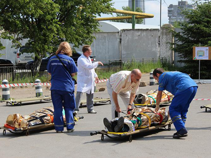 По легенде, на трибуне стадиона, где находились болельщики, произошло обрушение. На место происшествия прибыла бригада скорой помощи, которая определила степень тяжести десяти "извлеченных из-под обломков" пострадавших и очередность эвакуации.