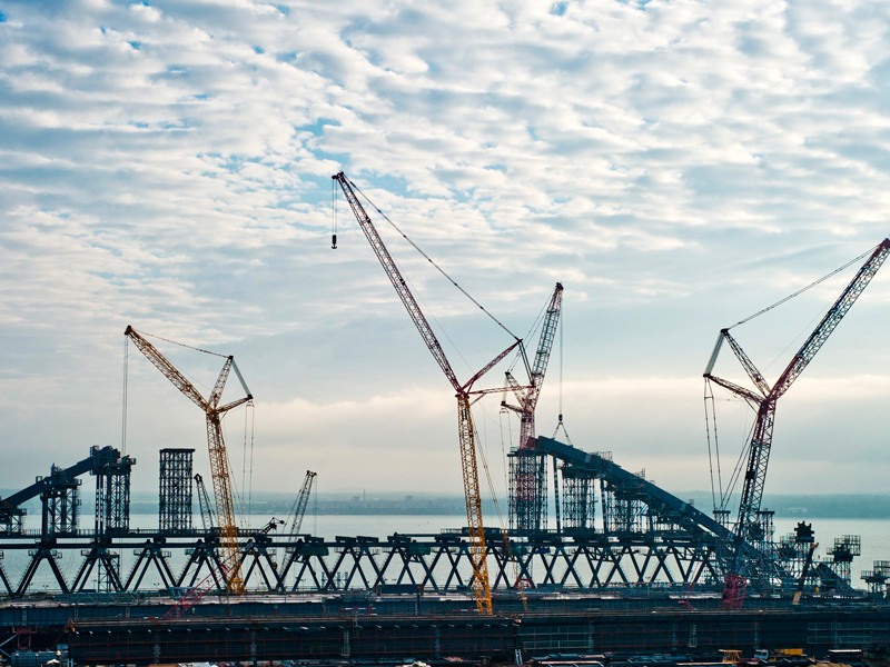 Строительство Керченского моста, который соединит Краснодарский край РФ с Крымом, минуя территорию Украины, началось в сентябре 2014 года. Мост длиной около 19 километров станет самым протяженным в России. В конструкцию войдут четырехполосный автомобильный переход и две железнодорожные колеи.