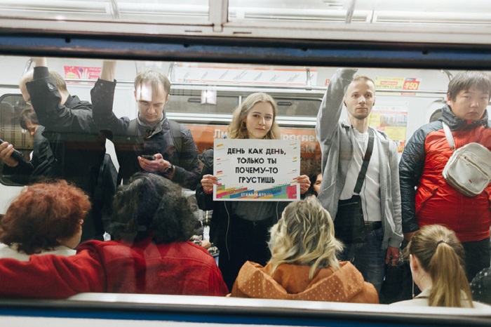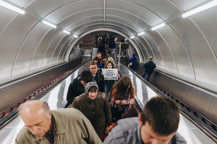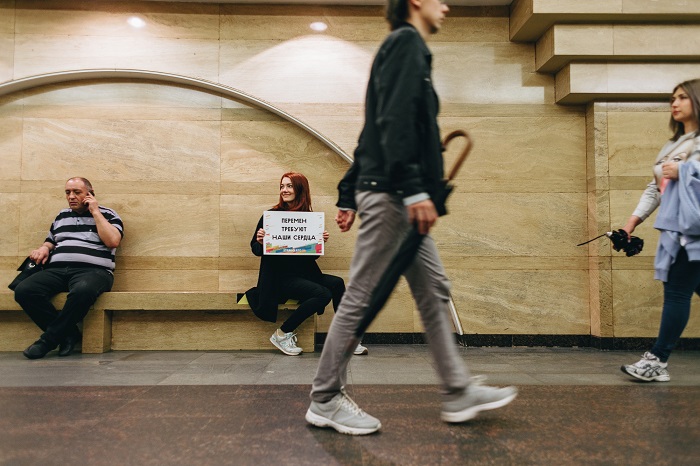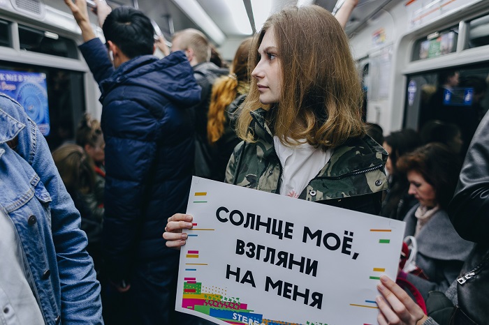 Петербуржцы проехали в метро с плакатами «Солнце мое, взгляни на меня» и «Перемен требуют наши сердца»