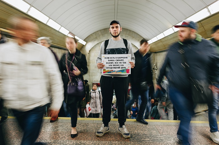 В среду, 21 июня, несколько петербургских студентов проехали в метро, держа в руках плакаты с цитатами из песен группы «Кино». Акция приурочена к 55-летию Виктора Цоя.