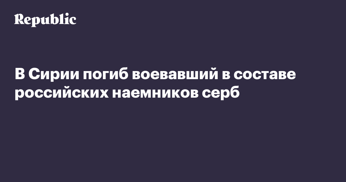 Гражданин Сербии Димитрий Саша Каран погиб в Сирии во время службы в составе российских наемников.
