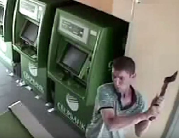 Сообщается, что мужчина зашел в офис самообслуживания, подождал, пока уйдут две девушки, достал из-под одежды топор и нанес им удары по экранам трех банкоматов.