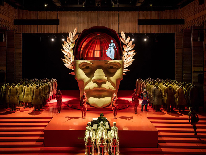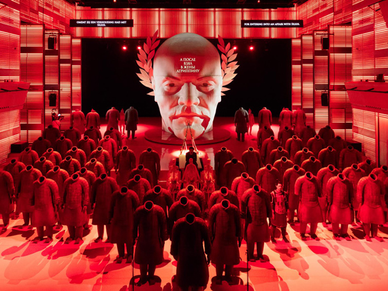 Опера-инсталляция — с гигантской головой Ленина в центре сцены, с колесницей, запряженной тройкой истлевших кентавров (сценограф — Степан Лукьянов), и с восемью десятками местных хористов, упрятанных в облачения воинов терракотовой армии, — выглядит апофеозом всего пугающего, что имиджево связано с Римской империей, с Советской Россией и с Древним Китаем как частными случаями тирании. Русские идут — так, вероятно, думала амстердамская публика, наблюдая в начале спектакля за четверкой красноармейцев, одетой художницей по костюмам Анастасией Нефедовой в пропитанную кровью кожу. Но операция, которую Юхананов проводит в «Октавии» на мозге Ленина, осуществляется одновременно и на зрительском сознании — снимая фантомные боли и редуцируя страх. В будущем сезоне спектакль доедет до Москвы, ближайшие сеансы «Трепанации» состоятся в октябре в Виченце — на сцене Teatro Olimpico Андреа Палладио.