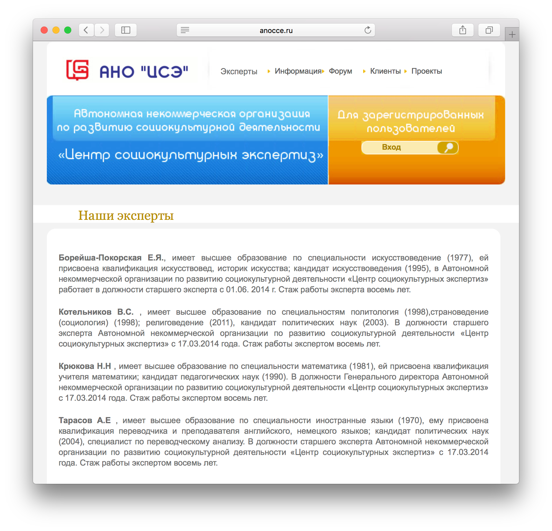 Экспертизу для дела провела автономная некоммерческая организация «Центр социокультурных экспертиз» (АНО ЦСЭ). Сам центр, как и его сотрудники, известны по другим громким делам, для которых они делали экспертные заключения. И почти каждый раз у юристов, правозащитников, а иногда и отдельных судов было много вопросов и к качеству экспертиз, и к компетенции их авторов.
