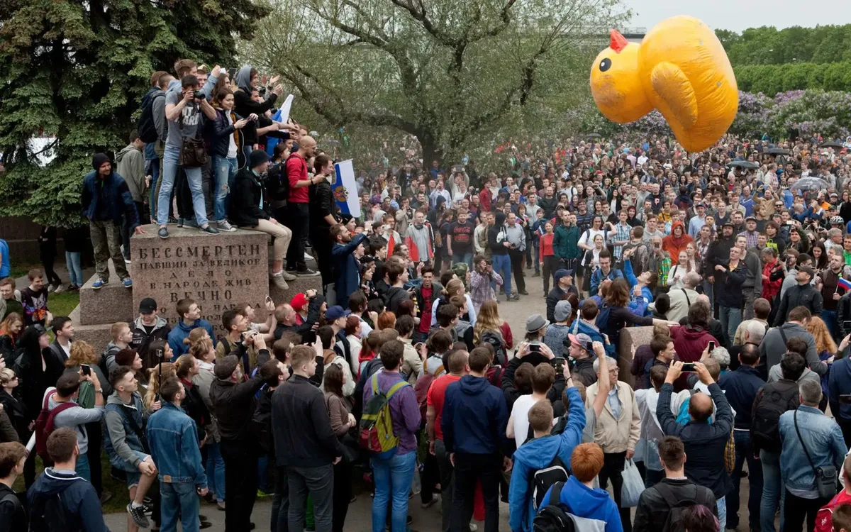 Женщины пошли вслед за толпой — люди группами двигались к Марсову полю. «У многих были уточки, флаги России, было праздничное настроение, для нас все было в новинку — мы же с Кавказа, у нас такого нет», — рассказывает мама.