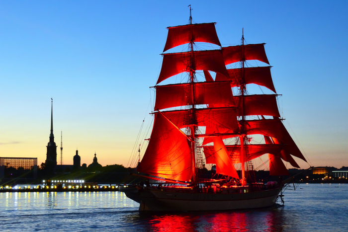 В 00:40 в акватории Невы стартует пиротехническое шоу. Его могут посмотреть не только выпускники, но и все желающие. По Неве под музыкальный аккомпанемент проплывет бригантина с алыми парусами.