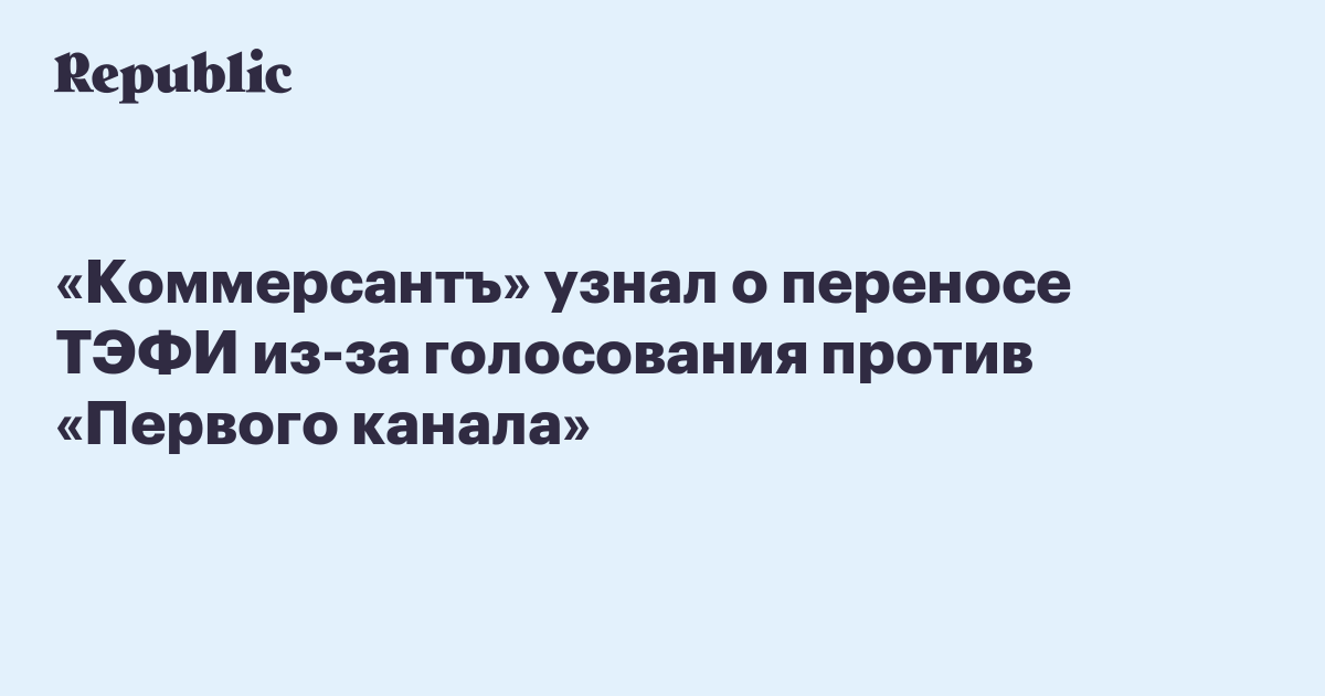 «Коммерсантъ» узнал о переносе ТЭФИ из-за голосования против «Первого канала»
