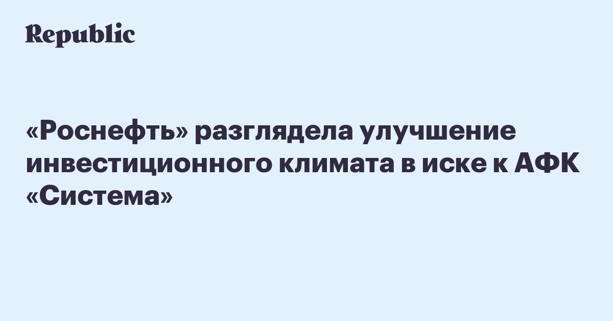 «Роснефть» разглядела улучшение инвестиционного климата в иске к АФК «Система»