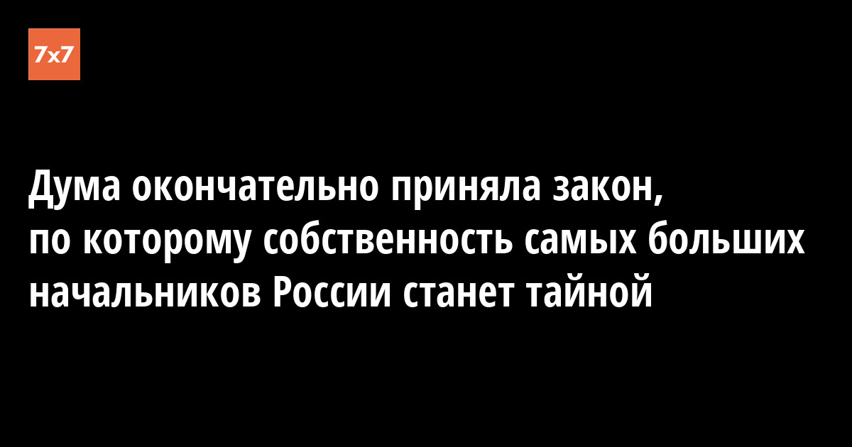 Поздравляем! Дума окончательно приняла закон, по которому собственность самых больших начальников России станет тайной.