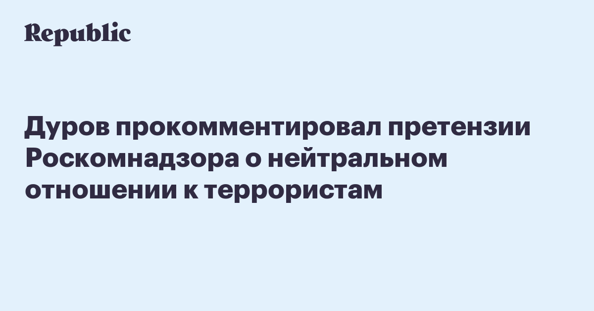 Основатель Telegram Павел Дуров ответил на претензии Роскомнадзора, касающиеся его якобы нейтрального отношения к террористам.