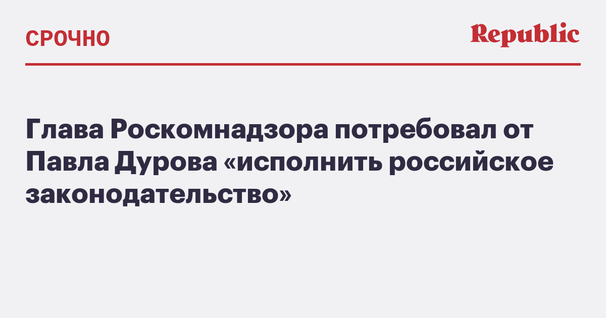 Глава Роскомнадзора потребовал от Павла Дурова «исполнить российское законодательство»