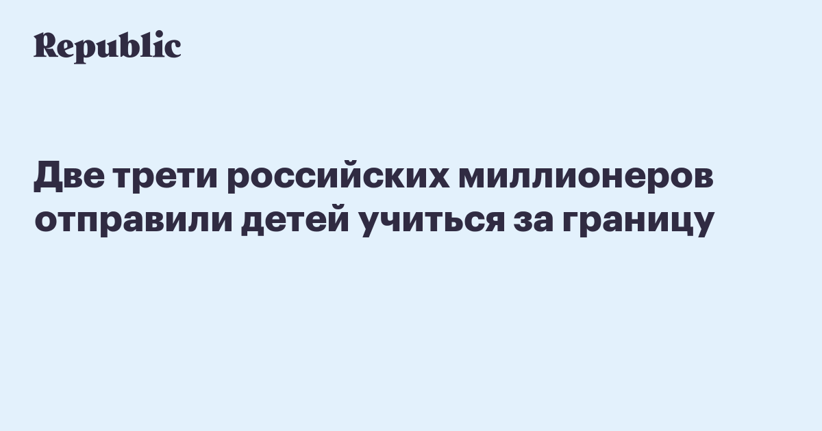 Примерно две трети детей российских миллионеров получают высшее образование или его часть за рубежом. Об этом свидетельствуют данные исследования Центра управления благосостоянием и филантропии «Сколково», подготовленного совместно с Julius Baer Group, пишет RNS.