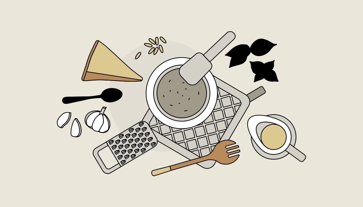 Название «песто» восходит к глаголу pestâ из генуэзского диалекта — дословно он означает «толочь, растирать в ступке». Именно так и положено готовить соус: выложить все твердые ингредиенты в мраморную ступку и растереть их круговыми движениями, постепенно добавляя оливковое масло. В результате должна получиться густая паста с едва ощутимой крупчатой текстурой.