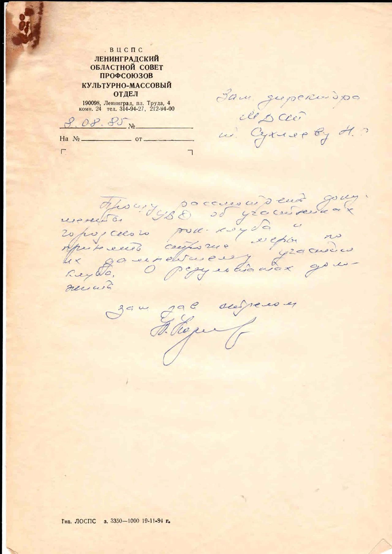 23 мая 1985 года Виктор Цой и лидер группы «Зоопарк» Майк Науменко прилетели в Киев, чтобы выступить с квартирником, после чего их задержала милиция. Организатору квартирника Андрею Кучеренко, Виктору Цою и Майку Науменко пришлось писать объяснительные и доказывать, что они не занимались предпринимательской деятельностью. Их отпустили. В августе 1985-го начальство «Ленинградского межсоюзного дома самодеятельного творчества» (ЛМДСТ), при котором состоял Ленинградский рок-клуб, потребовало разобраться с членами клуба Цоем и Науменко — и на некоторое время их даже лишили права выступать. Объяснительные Цоя, Науменко, Кучеренко все эти годы хранились в архиве бывшего секретаря рок-клуба Ольги Слободской. «Медуза» впервые публикует эти документы с подробной расшифровкой (орфография и пунктуация авторские), а также комментарием Слободской. Все материалы спецпроекта «Мы вышли из Кино» читайте тут.
