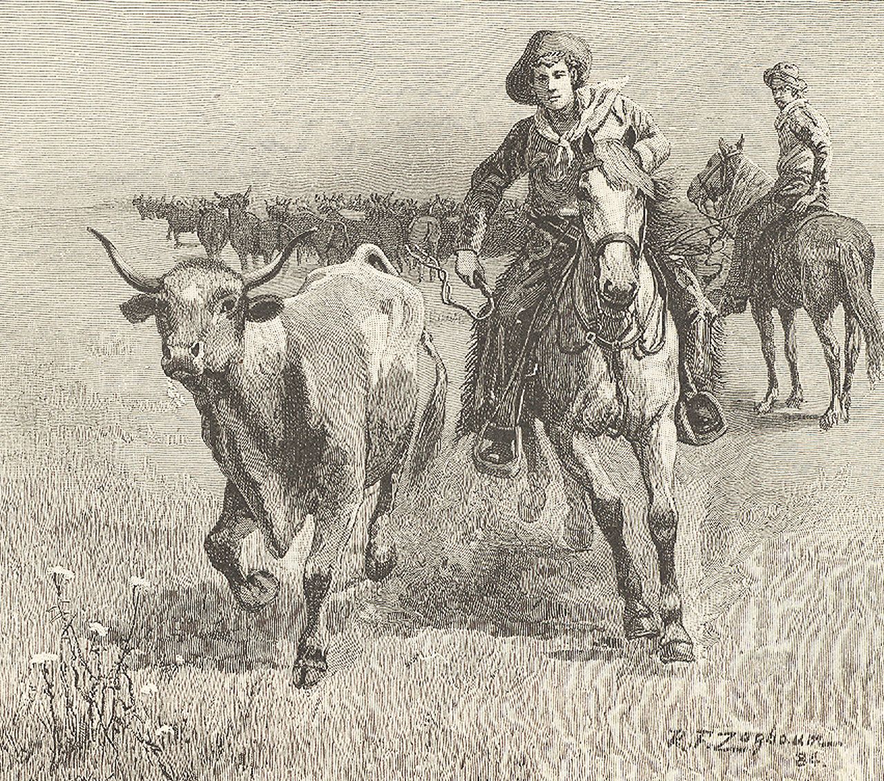 В Европе встречаются свои аналоги: чикоши в венгерской Пусте (степной район), андалузские всадники в скотоводческих районах, чье вычурное поведение, вероятно, дало первоначальное значение слову flamenco, разнообразные казацкие общины юга России и украинских степей. Я не буду говорить о разных других, неверховых формах пастушества или о совсем мелких общинах скотоводов и даже о заметных европейских общинах гуртовщиков, чья функция была в точности той же, что у ковбоев: а именно гнать скот из далеких мест, где его растили, на ярмарки. В XVI веке в Европе имелись точные эквиваленты техасской тропы Чизема, которые соединяли венгерские равнины с ярмарочными городами: Аугсбургом, Нюрнбергом или Венецией. И уж точно нет нужды рассказывать о необъятной австралийской глуши, которая в основном занята скотоводством, хотя там это в первую очередь овцы, а не крупный рогатый скот.