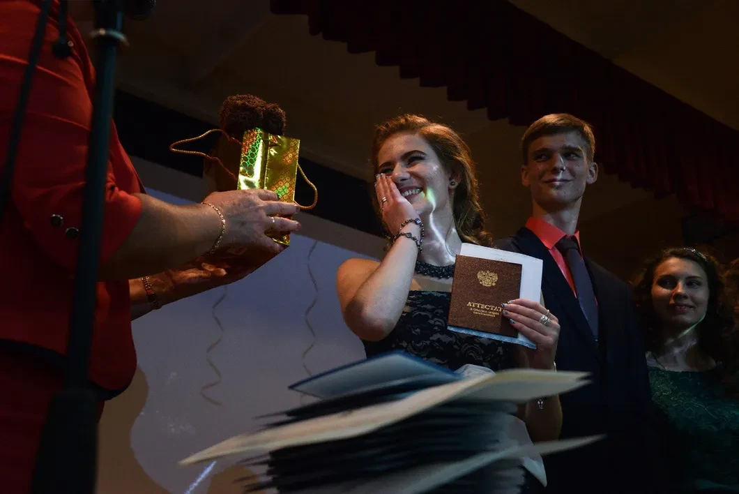 Варвара Веденеева — выпускница аэрокосмического лицея № 13 г. Химки, золотая медалистка. Параллельно с учебой она занималась волейболом, танцами, пением, общественной школьной деятельностью и личной жизнью. У Варвары 100 баллов по русскому языку — первый в ее лицее стопроцентный результат за все время существования системы ЕГЭ. В этом году школьники из Подмосковья отмечают свой выпускной, как кавказскую свадьбу — три дня. Репетиция бала медалистов, прощальный праздник в школе и грандиозная вечеринка в парке «Патриот» — в фоторепортаже Виктории Одиссоновой.