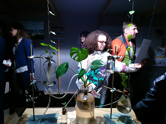 Во-вторых, партнером фестиваля выступил Политех, который построил в Музее истории АО «ВМЗ» настолько уютную комнатку с работами современных художников и собственными экспонатами («паровые машины, измерительные приборы, драгоценные кристаллы, выращенные в воде»), что несметное по выксунским меркам количество журналистов там еле уместилось, было сложно разминуться на узких деревянных мосточках. Выставка «Можно из-под крана?» — это показательный пример, как непрофильный для современного искусства музей может деликатно с ним обойтись. Работы Ирины Петраковой, Натальи Зинцовой, Светланы Гришиной, Ильи Долгова и других участников довольно органично вписались в, скажем так, научно-популярную экспозицию и не были ею задавлены.