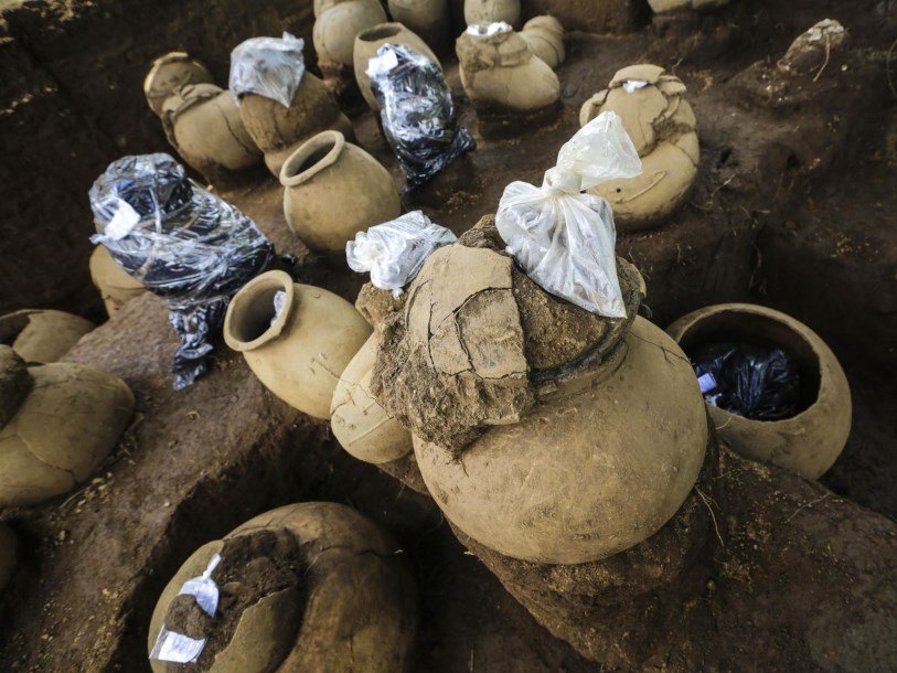 Точный возраст кладбища пока неизвестен. Предполагается, что оно использовалось между 800 и 1350 годами. Скелетные останки немногочисленны и разрознены. Один из самых неповрежденных скелетов сохранил череп с несколькими зубами, ребра, длинные кости рук и ног. Однако кисти рук и ступни у него отсутствуют. Керамические сосуды служили погребальными урнами, в некоторых из них сохранились человеческие останки. Несмотря на то, что сосуды находились на глубине менее метра, многие из них в отличном состоянии, с сохранившимися крышками, рельефами и выгравированными изображениями игуан и человеческих лиц. У некоторых даже сохранились следы оригинальной полихромной краски.