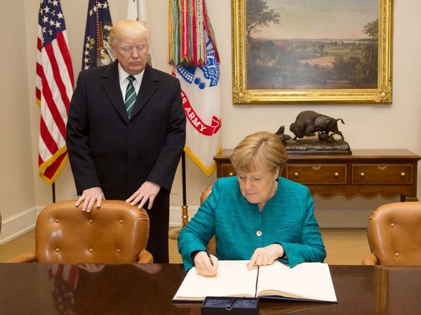 Дональд Трамп с Ангелой Меркель во время ее официального визита в Белый дом The White House СМИ продолжают обсуждать развитие предвыборной ситуации в Германии. Сейчас в центре их внимания вновь оказалось противостояние между канцлером Германии Ангелой Меркель, претендующей на переизбрание, и ее главным конкурентом Марином Шульцем от социал-демократов. Одним из наиболее обсуждаемых моментов стала критика Шульца в адрес Меркель за недостаточно жесткую позицию по отношению к президенту США Дональду Трампу.