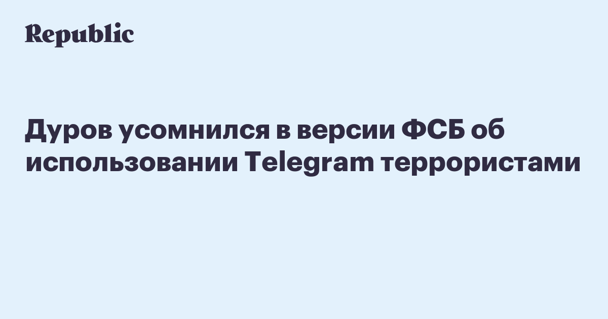 Дуров усомнился в версии ФСБ об использовании Telegram террористами