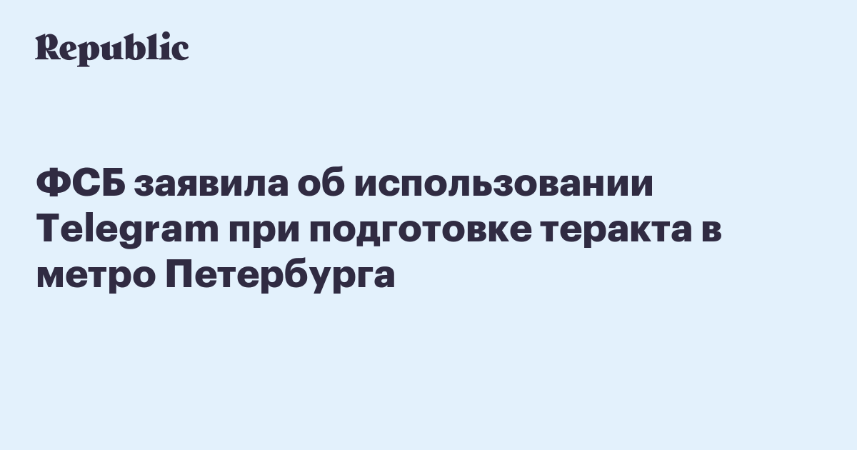 Telegram использовался для подготовки терактов в России, в том числе в метро Петербурга 3 апреля, сообщает «Интерфакс» со ссылкой на ФСБ.