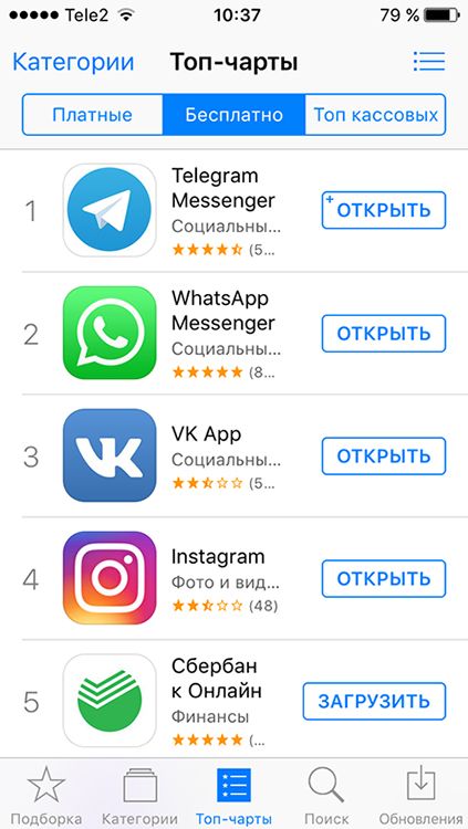 Мессенджер Telegram 27 июня стал лидером среди бесплатных приложений в российской версии магазина Apple App Store. Днем ранее телеграм был только на седьмом месте, передают «Ведомости» со ссылкой на данные App Annie.