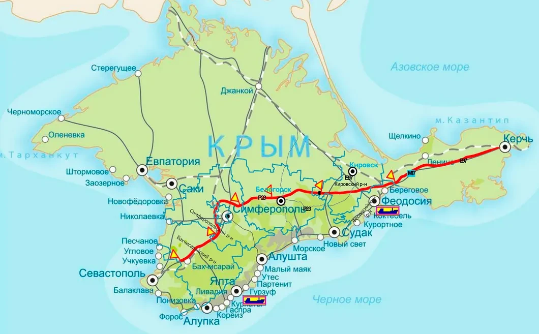 253 километра, 4 полосы с рукавами для съезда, стоимость — 139 миллиардов рублей. Это проект новой федеральной трассы «Таврида», которая пройдет через весь Крымский полуостров, соединив Керчь с Севастополем.