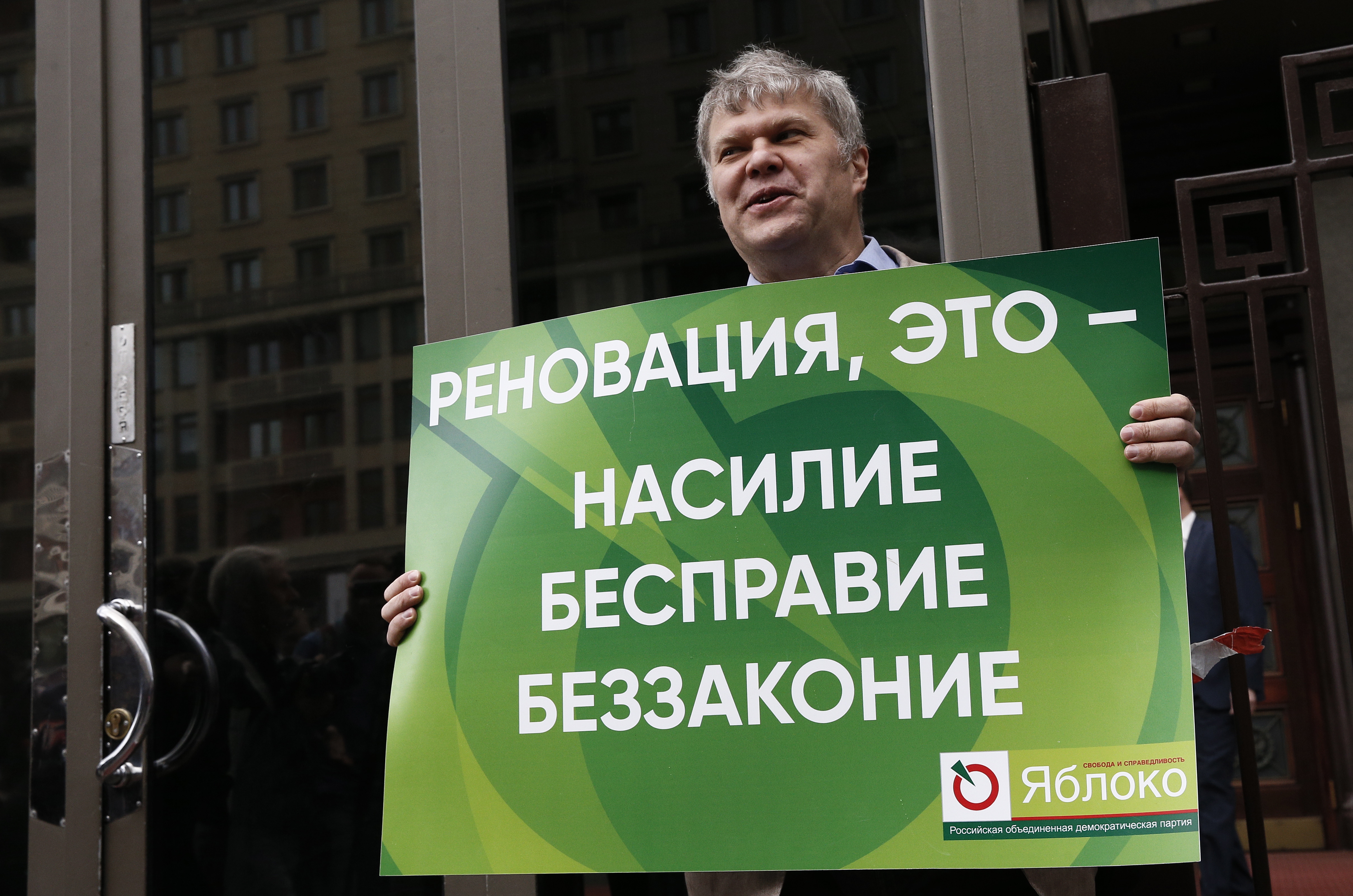 Главу московского отделения партии "Яблоко" Сергея Митрохина задержали в среду утром у здания Совета Федерации. Политик принимал участие в акции против сноса домов в Москве в рамках так называемой программы реновации.