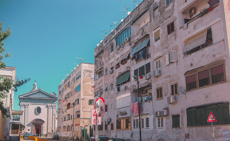 Направляющимся в этот район туристам советуют на всякий случай не отсвечивать телефонами и держать сумки крепче, но на деле все не так страшно. Рионе Лузатти — это в прямом смысле спальный район с домами, похожими на наши родные хрущевки. Здесь балконные двери других конструкций и цветов, но те же лавочки во дворах; на каждом газоне статуя святого, но тут же разбит и сад-огород. Рионе Лузатти — это лето в душных коробках и игра в прятки в раскаленном от жары дворе, это «секретики» — осколки стекла, и мороженое в магазинчике за углом, это возвращение в детство.