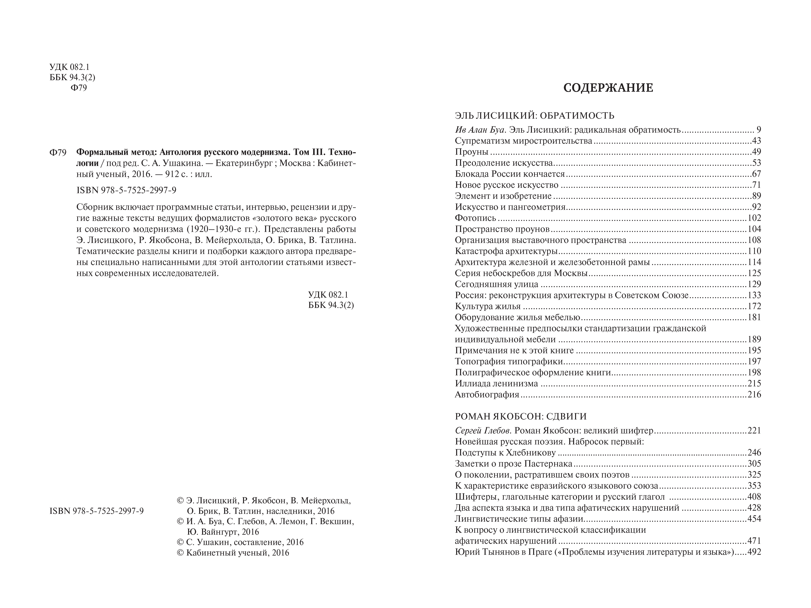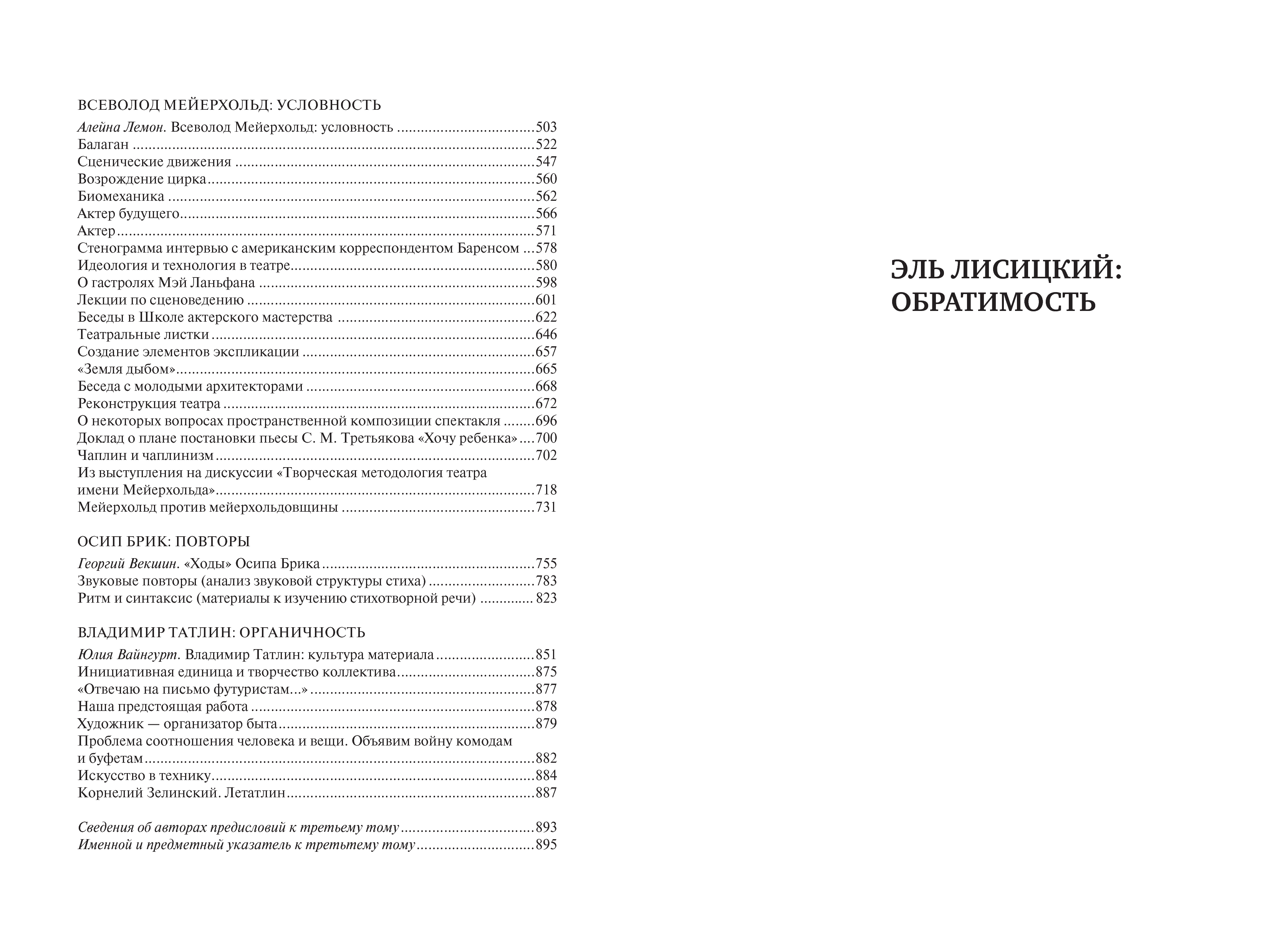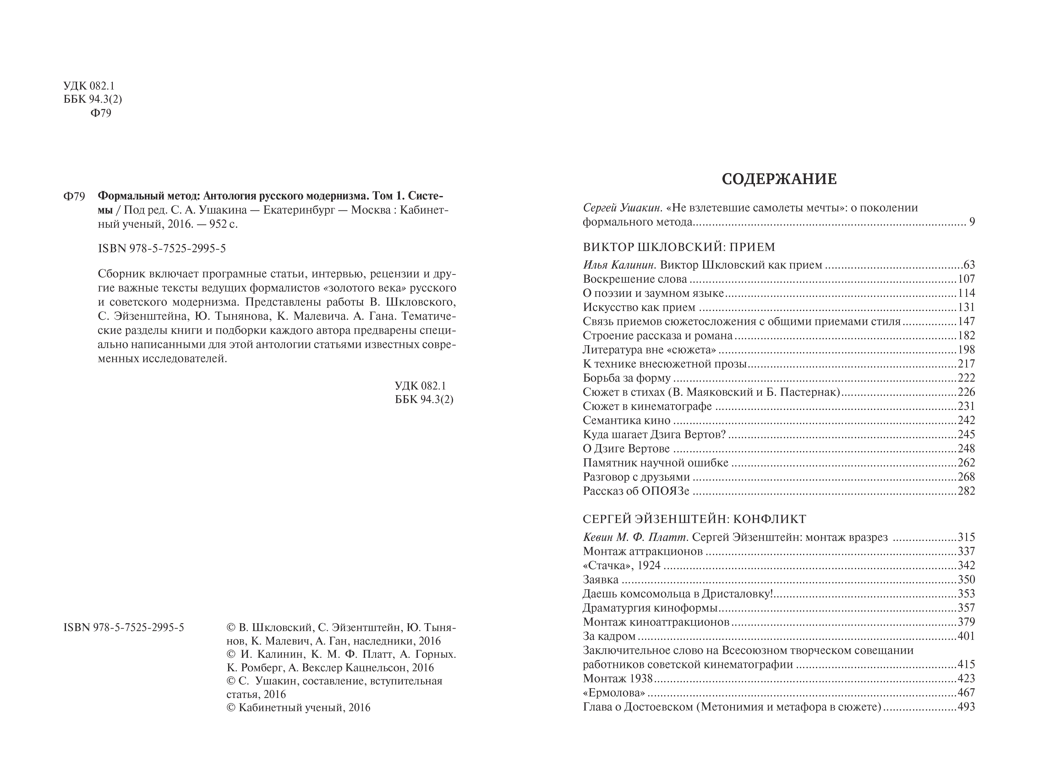 Первый том, «Системы», посвящен аналитическим машинам (образным, языковым, выразительным и нерепрезентативным), созданным Эйзенштейном, Шкловским и Ганом. Второй — «Материалам», реальности как полезному сырью, требующему человеческой и машинной обработки; вещам как адвокатам человеческого быта (чьи биографии захватывают куда сильнее традиционных жизнеописаний), с которыми работали Сергей Третьяков и Александр Родченко. Третий отдан «Технологиям» — способам построения суждений, выплавления ритмико-синтаксических структур, обработки «полезного сырья», которыми занимались Осип Брик и Роман Якобсон. От каждого «якорного» термина читатель волен сам протягивать связи к другим понятиям, рискуя, впрочем, встретить трудноопределимую «кино-вещь» Вертова, выуженную Ганом из геологических складок «тектонику» и пережить «невязку» — распад реальности и невозможность ее описания.