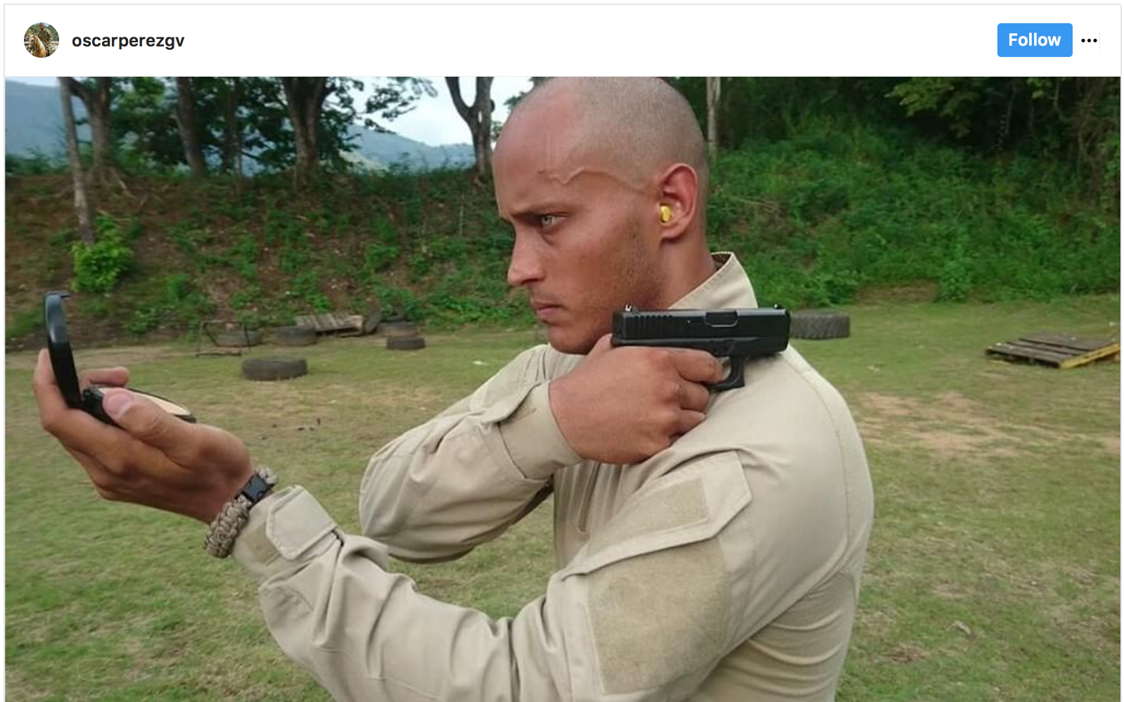 Оскар Перес не только полицейский, но и актер. В 2015 году он снялся в фильме «Отложенная смерть» о полицейских из элитного подразделения, которые спасают жертву похищения. В своем инстаграме он выкладывал фотографии и видео своей боевой подготовки: на одном из фото он стоит с винтовкой, готовый к погружению под воду; на видео он показывает, как может стрелять, стоя спиной к мишени и ориентируясь по зеркалу в пудренице.