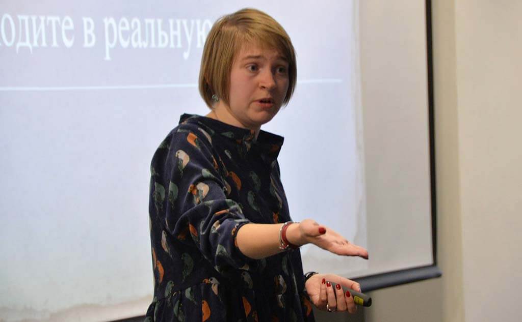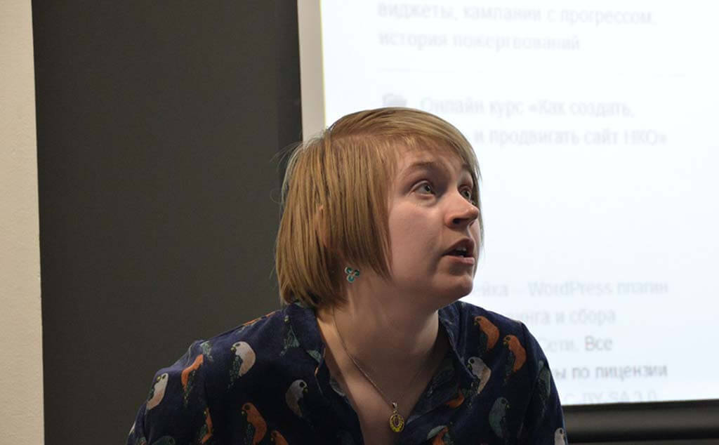 На встрече выступила Юлия Корчагина, журналист, медиаменеджер, основатель редакторского бюро «Soautor», PR-специалист краудфандинговых проектов на Planeta.Ru и Boomstarter. Юлия также сотрудничает с Международным мемориалом, занимается исследованиями советского наследия, культурной памяти и этническими конфликтами.
