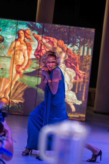 Тут все куда изысканнее, чем в предыдущей композиции. На сцене стоят стулья в виде раковин, недвусмысленно отсылающие к «Рождению Венеры» Боттичелли. За Венеру тут все та же Казакова. Она выясняет отношения с Амуром (Антон Капанин). Действие переносится на Олимп, и здешние боги ссорятся, меряются достоинствами и состязаются за внимание аудитории ну совершенно как люди. Точнее, как артисты.