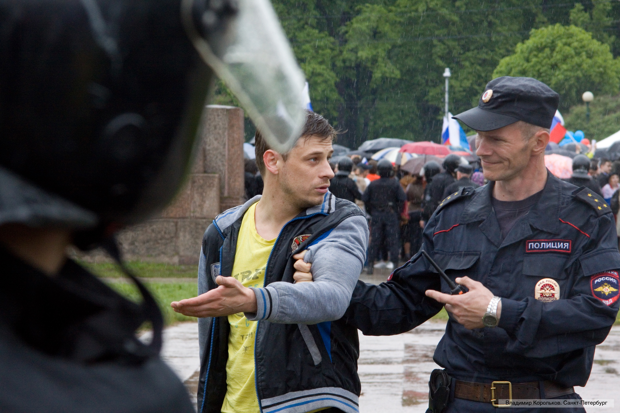 Как рассказал один из задержанных 12 июня на акции в Петербурге по имени Юрий, к нему пришли полицейские и попросили проехать в отдел. Поскольку у них не было никаких официальных документов, он отказался. После визита полиции ему позвонили из суда и сообщили, что заседание по его делу – неповиновение законному распоряжению сотрудника полиции – назначено на 5 июля. Ранее активист уже был приговорен к штрафу за нарушение порядка проведения митинга.
