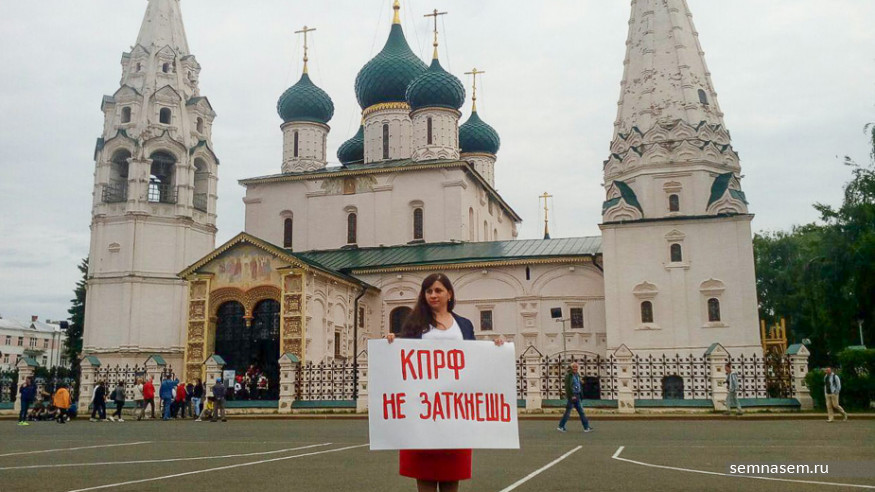 Четверо активистов коммунистической партии в Ярославле начали серию пикетов на Советской площади Ярославля. Они встали с плакатами в разных частях площади на расстоянии больше 50 метров друг от друга.