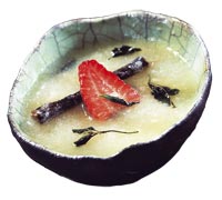 Но холодные супы — далеко не всегда первое блюдо. Холодный суп с ревенем, фруктовый суп из сухофруктов — отличные десерты. Среди десертных холодных супов самым привлекательным является вишневый, с варениками с вишнями. Нечто вишневое в квадрате: ягоды не только внутри вареников, но и в «бульоне». Для вишневого супа нужно довести до кипения залитые водой 350 г вишни без косточек, остудить, выловить ягоды, измельчить в блендере, вернуть в отвар, добавив туда ложку меда, корицу, имбирь и чуть-чуть ванильного сахара. Слепленные по классической рецептуре вареники с вишней следует сварить в вишневом отваре, добавить 1–2 столовые ложки коньяка, охладить и подавать со взбитой с сахаром сметаной. Нечто божественное!