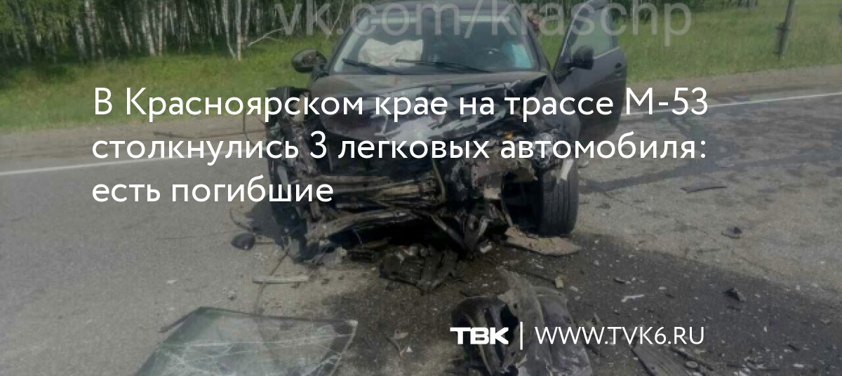 В Красноярском крае на трассе М-53 столкнулись 3 легковых автомобиля: есть погибшие