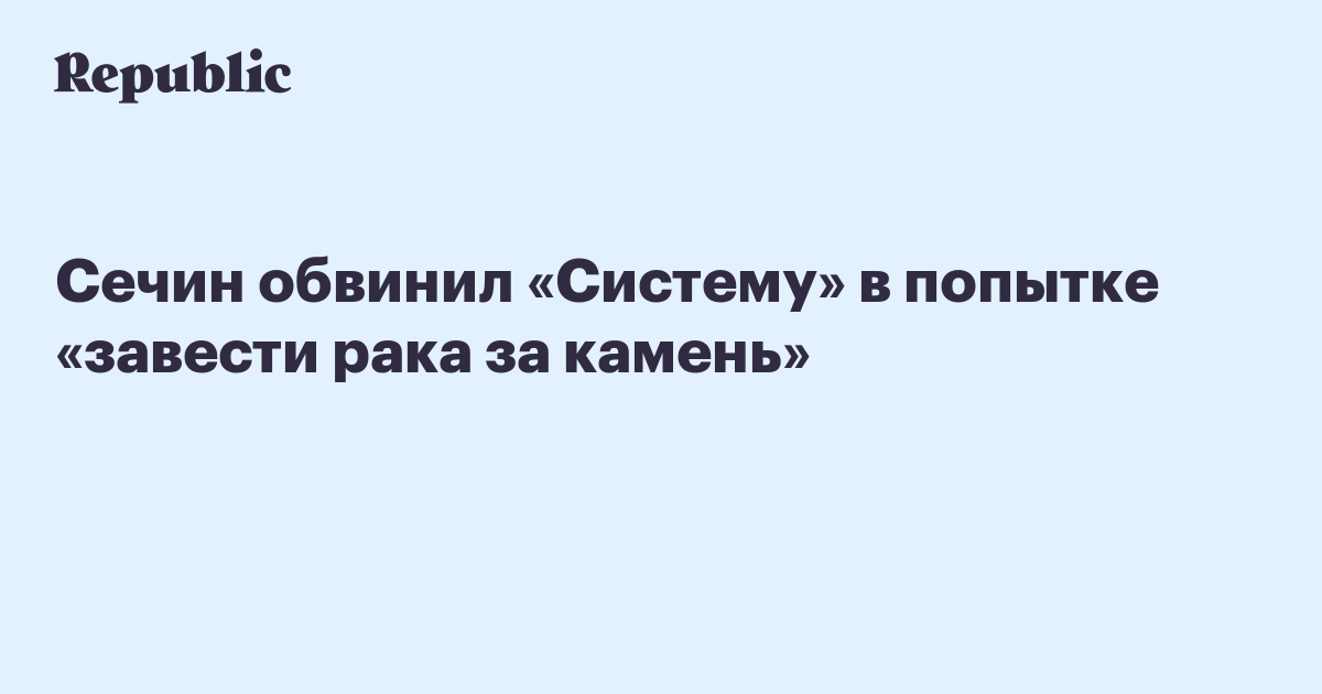 Сечин обвинил «Систему» в попытке «завести рака за камень»