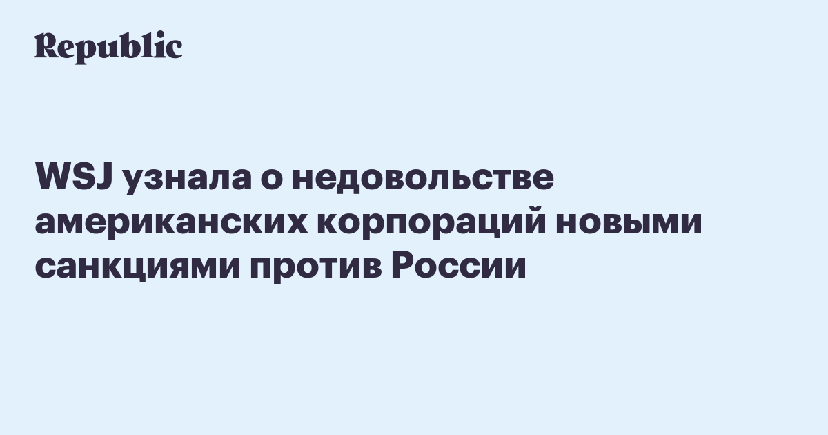 WSJ узнала о недовольстве американских корпораций новыми санкциями против России
