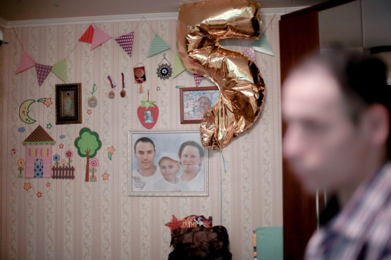 «После того, как со мной поступила моя мать, я никому не мог его доверить — это мой первый ребенок и моя первая жизнь»Все стены маленькой «хрущевки» завешаны семейными фотографиями. «Я покажу взгляд!» — Максим за руку тянет к большому формальному портрету. Светловолосый мальчик в матроске грустно смотрит в камеру, фотография сделана после праздника в детском саду, на который Максим опоздал. Мужчина в лицах показывает, как он пришел к самому концу выступления: