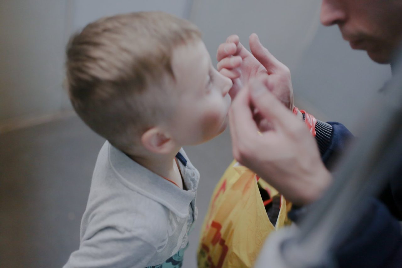 Из детского сада мальчик выходит хмурый. Он невнятно бурчит что-то себе под нос и, кажется, готов расплакаться. Максим садится перед Олегом на корточки: «Ты себя так ведешь, потому что расстроился? Ты расстроился, потому что я рано пришел? Ты хотел остаться в садике на ужин? Сын, я это понимаю, но сейчас нам надо готовиться к походу. Пойдешь со мной в поход, сын?»