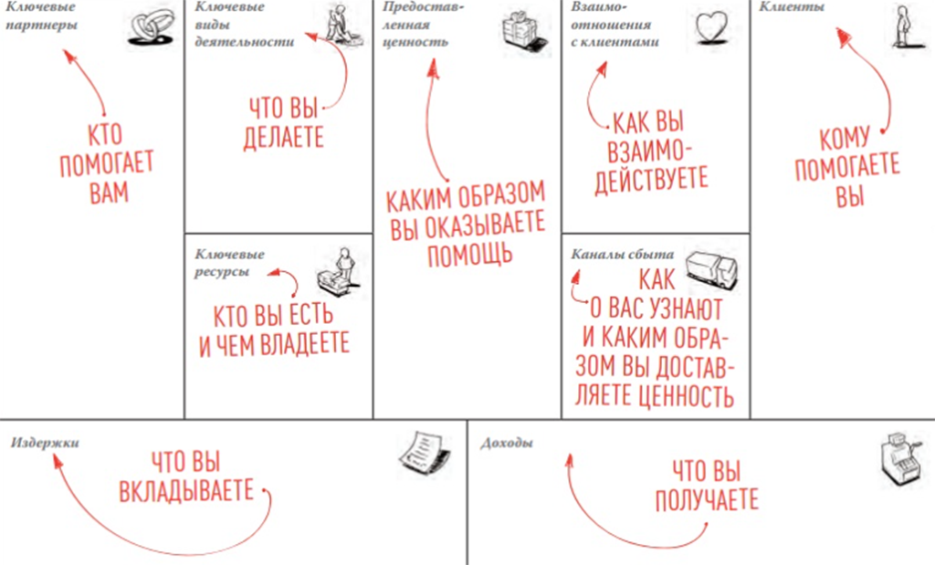 Смысловое ядро строится из базовых эмоций и называется ключевым сообщением. Для создания главного месседжа вы можете использовать модель Александра Остервальдера.