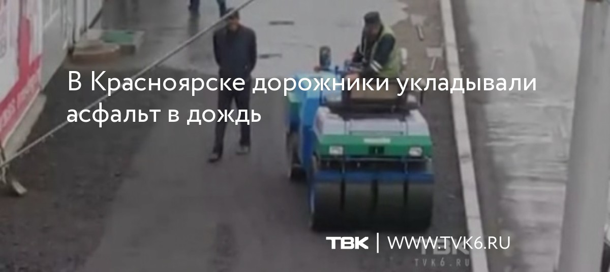 Видео очевидцы опубликовали в соцсетях. На кадрах видно, как каток проезжает по свежему асфальту, в то время как пешеходы ходят под зонтиками – на улице идет проливной дождь.
