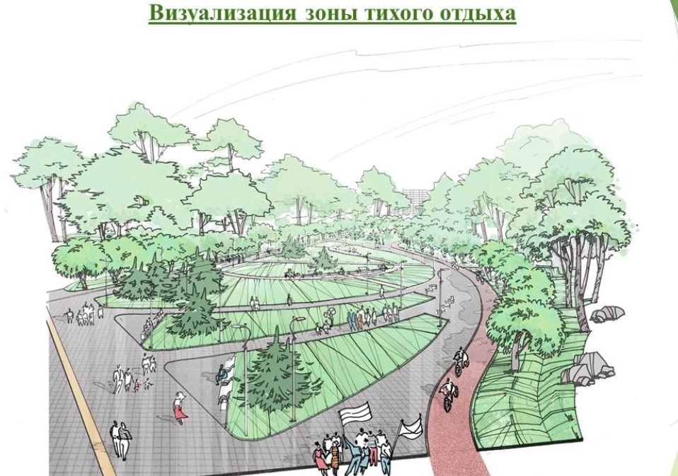 На территории будет как лесопарковая зона с максимально сохраненным масштабом, так и парковая, где будут расположены дорожки, площадки для отдыха, детские и спортивные уголки. Согласно проекту, там обустроят спуски к воде и установят на них смотровые площадки.