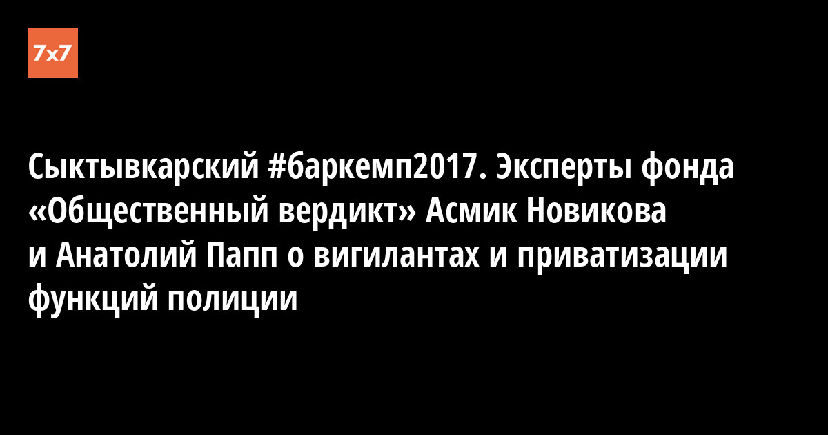 Сыктывкарский #баркемп2017. Эксперты фонда «Общественный вердикт» Асмик Новикова и Анатолий Папп о вигилантах и приватизации функций полиции