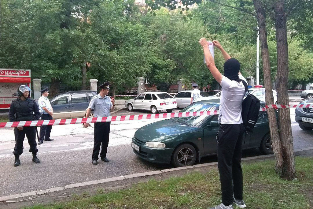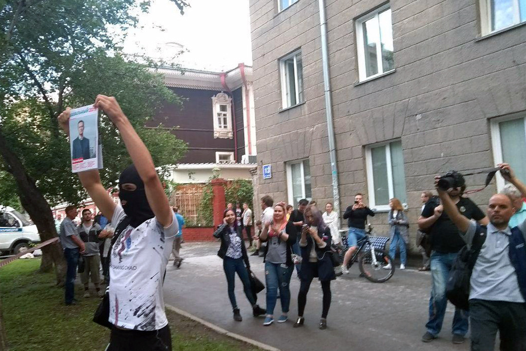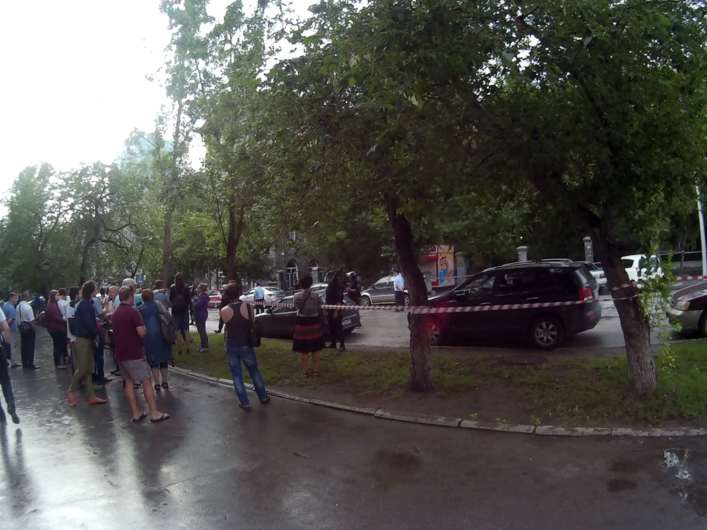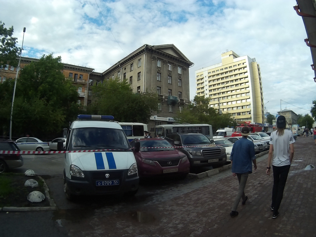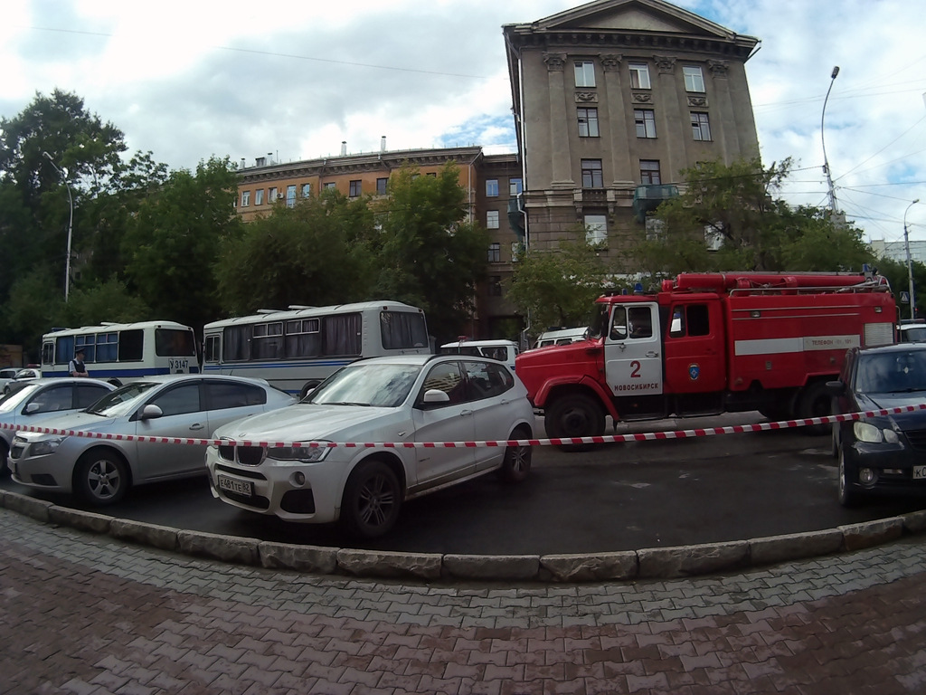 «До шести вечера сотрудники блокировали входы. Мы устроили посменное дежурство, чтобы не дать им войти в штаб и что-то подбросить. Не менее пятнадцати волонтеров и сотрудников штаба одновременно присутствовало. Спустя четырнадцать часов, они, не найдя ни одного судью, который вынес бы решение, дающее им право войти в офис, не придумали ничего лучше, чем найти у нас в штабе бомбу, — рассказал координатор штаба Навального в Новосибирске. — Сейчас улица Ленина в районе Урицкого блокирована и оцеплена. У нас тут пожарные, кинологи, скорая помощь, два автозака — видимо, чтобы бомбу задержать. Двери в штаб выбиты, но мы не знаем, что там происходит, потому что не пускают ни нас, ни собственника, ни адвоката. Сотрудникам „Бинбанка“, находящегося в торце этого же здания, наоборот, не дают выйти, а людей с пропиской в этом же доме пропускают через оцепление. Удивительным образом прописка на Ленина, 18 защищает от взрывного устройства».